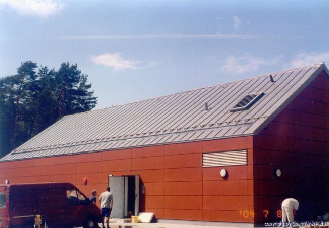 TrÜbPl Grafenwöhr: Funkzentrale US Army, Metallbedachung, Aluminium Stehfalz (Brilliantmetallic)