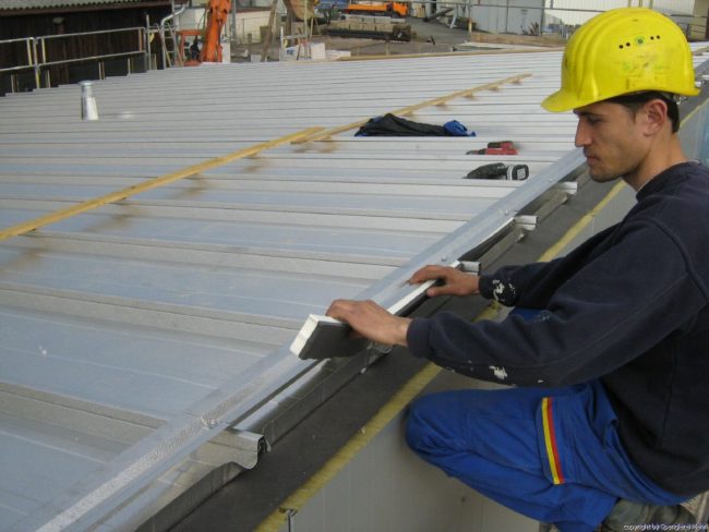 Einfassung von 3 Lichtbändern auf Kalzipdach