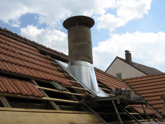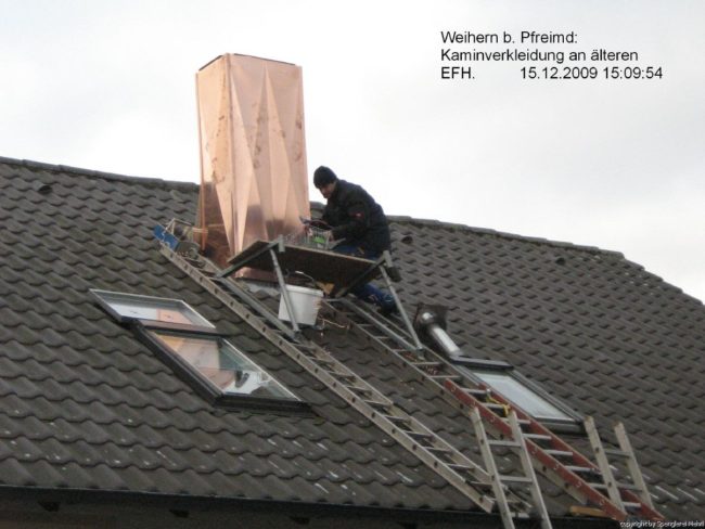 Stall in Neunburg: Einfassung eines Dunstkamins mit 0,8 m Durchmesser. Besonderheit: Beachtung Brandgefahr bei Lötarbeiten