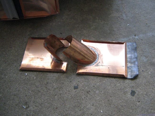 Einfassung zweitilig aus Kupfer eines bestehenden Abgaskamins einer Gastherme. (Demontage Kaminhut nicht möglich, deshalb zweiteilig)