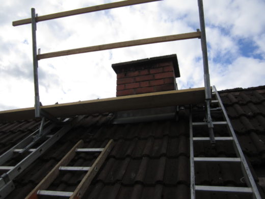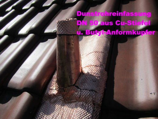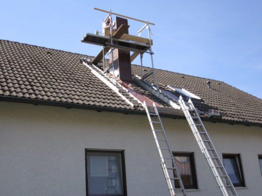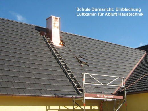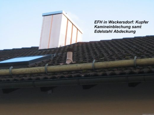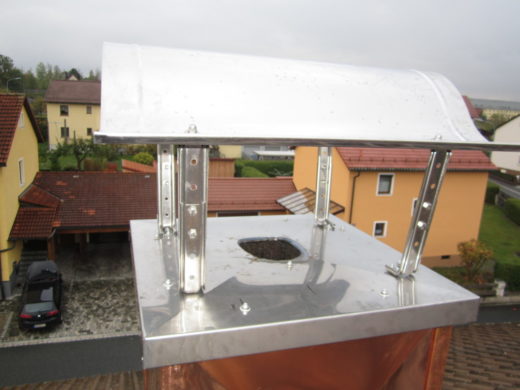 Stall in Neunburg: Einfassung eines Dunstkamins mit 0,8 m Durchmesser. Besonderheit: Beachtung Brandgefahr bei Lötarbeiten
