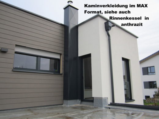Nabburg: Kamineinfassung einer Heizzentrale – aus Titanzink vorbewittert.